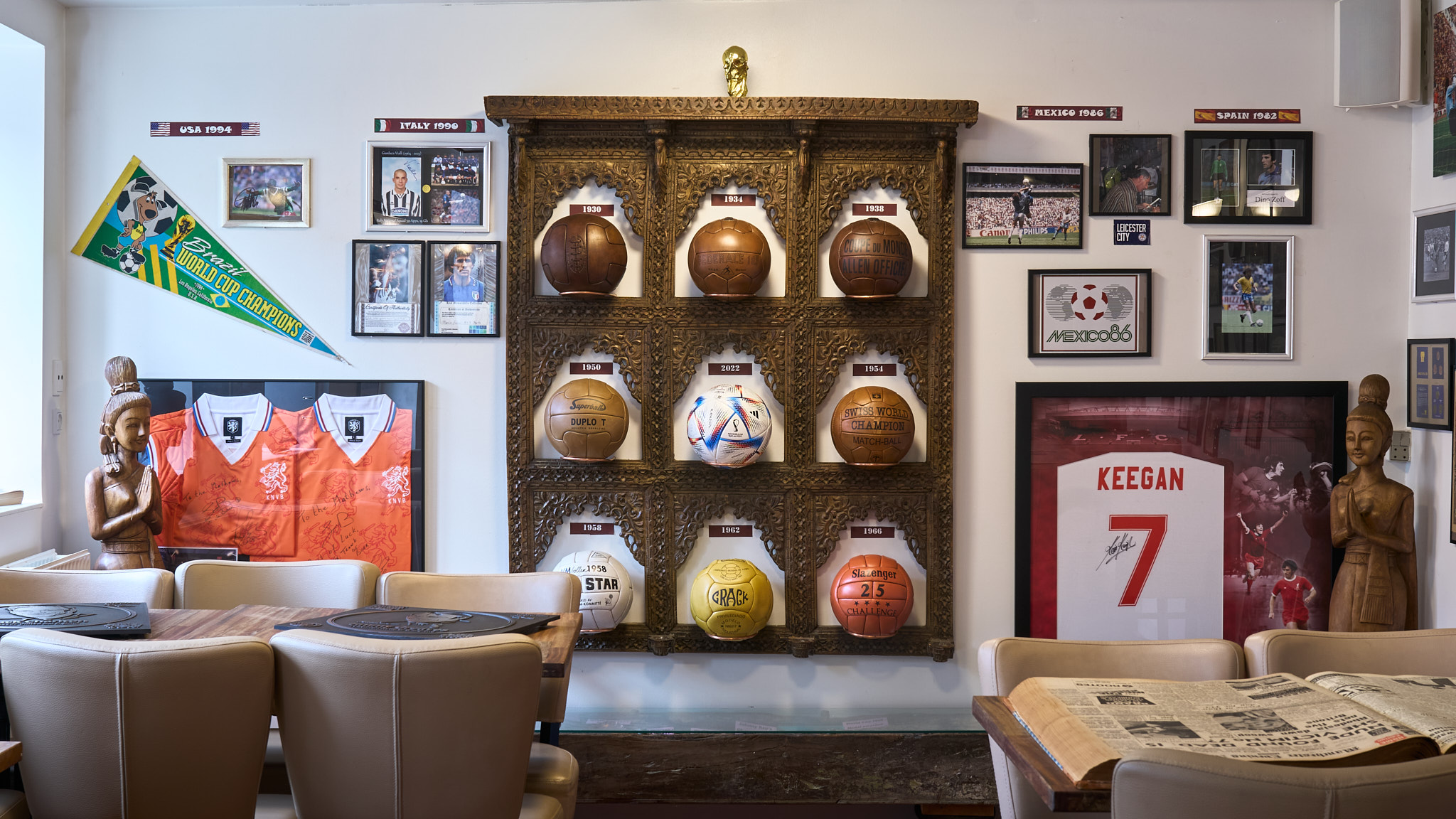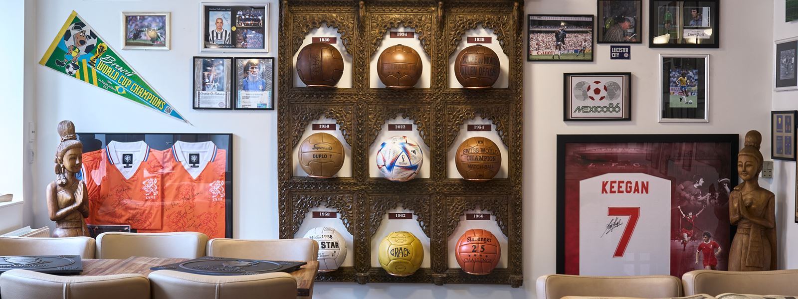Samlingen tæller bl.a. trøjer, aviser, bøger, autografer, plakater, håndsyede bolde fra forskellige runder og endda en sølvmedalje fra finalen i 1974.