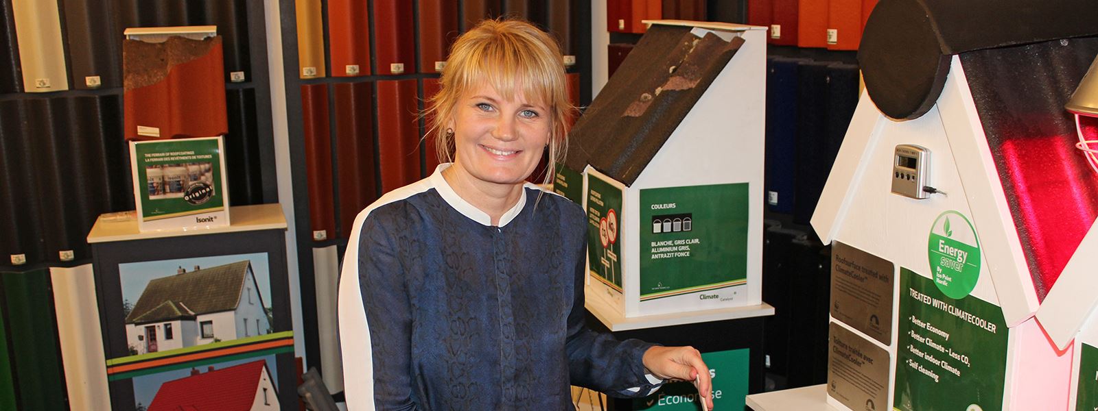 - På en sommerdag bliver ens tagplader som kogeplader på omkring 80 grader. Med Climate Cooler bliver temperaturen nedsat til kun 60 grader. Og det forlænger tagets levetid, siger Marketingschef, Nina Kjærgaard Reinert.